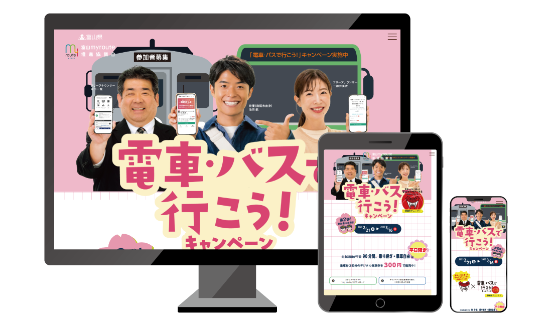 CLOSE HTML CSS 電車・バスで行こう!キャンペーン 電車・バスで行こう!キャンペーン第一弾、第二弾のキャンペーンサイト制作 サイトをみる WEB SITE design coding management